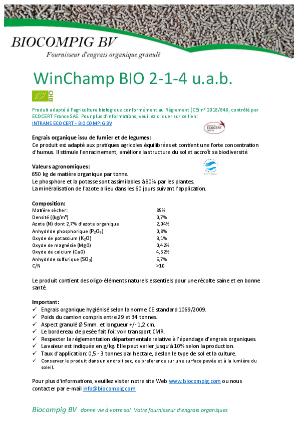 Ce produit convient aux pratiques agricoles équilibrées et contient une forte concentration de chitine. Il favorise un bon enracinement, améliore la structure du sol et accroît sa biodiversité. La chitine, son principal composant, active une activité antagoniste et peut ainsi inhiber la croissance et l'activité des agents pathogènes des plantes. Elle constitue une source de nourriture idéale pour des micro-organismes tels que Bacillus subtilis, les protozoaires, les mycorhizes et les actinomycètes. WinSect 3-3-2,5 agit comme un activateur de sol qui rétablit l'équilibre écologique du sol.